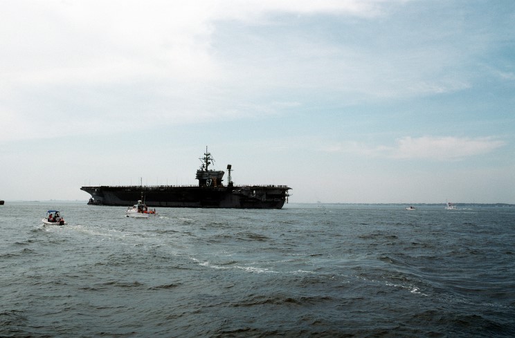 March 28, 1991: USS John F. Kennedy CV-67 arriving at her homeport, NAS Norfolk, Virginia following deployment in Operation Desert Shield and Operation Desert Storm. |