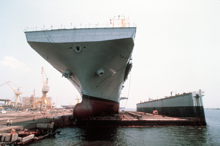 Wasp LHD-1 in a floating drydock at Litton-Ingalls Shipbuilding Corp.
