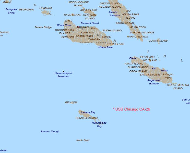 Location of the loss of USS Chicago CA-29 (11.25S-160.53E).