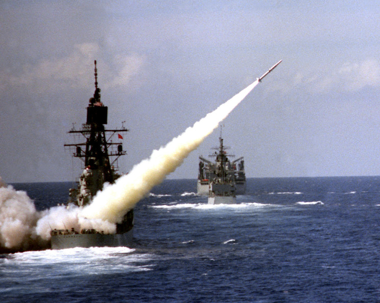 USS Farragut DDG-37 firing a RIM-2 Terrier missile.