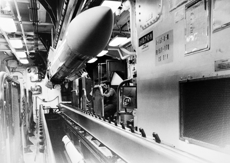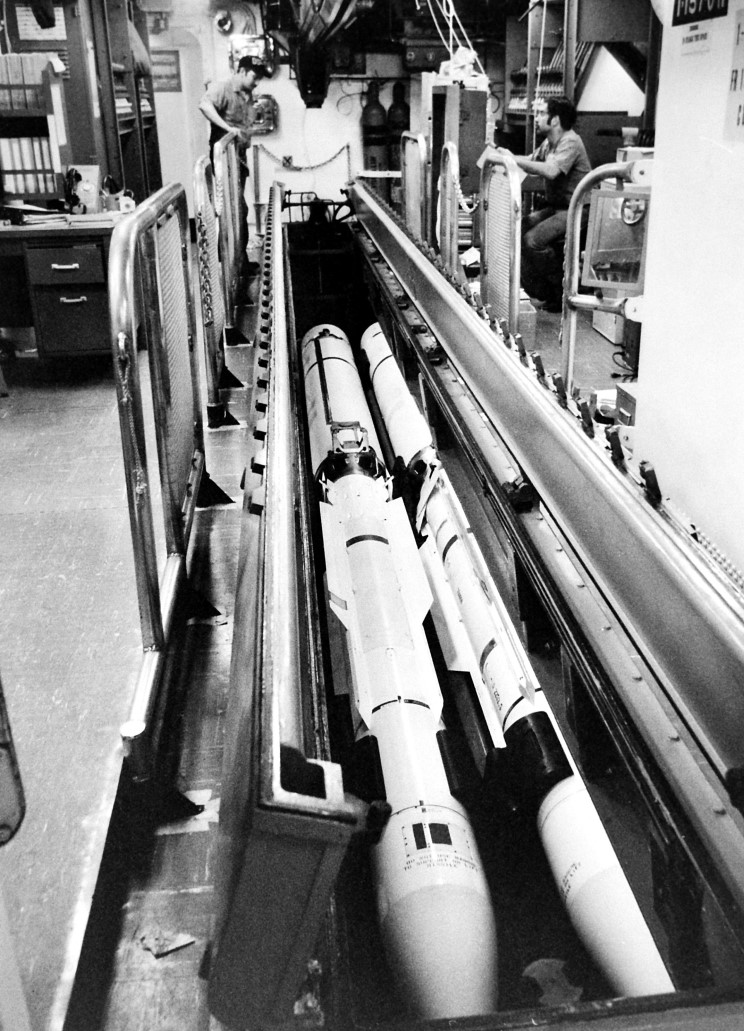 A RIM-67 SM-2 ER SAM missile in the missile house on USS Mahan DDG-42.
