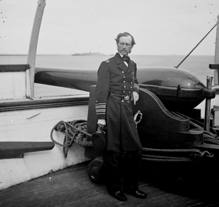 Rear Admiral John A. Dahlgren on the deck of the USS Pawnee in Charleston Harbor circa 1864-65. |