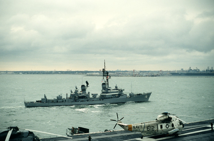 September 7, 1988: USS Semmes DDG-18 alongside the USS Forrestal CV-59 during Exercise Team Work 88.