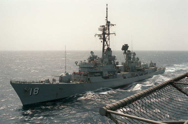 June 16, 1988: USS Semmes DDG-18, USS Milwaukee AOR-2 and USS Forrestal CV-59 conducting an