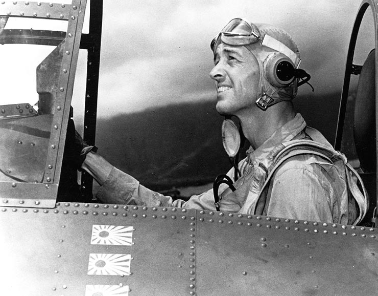 May 1942: Lt. Commander John S. Thach in his F4F Wildcat.