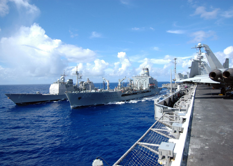 October 14, 2008: USNS Rappahannock T-AO-204 and USS Shiloh CG-67 alongside USS George Washington