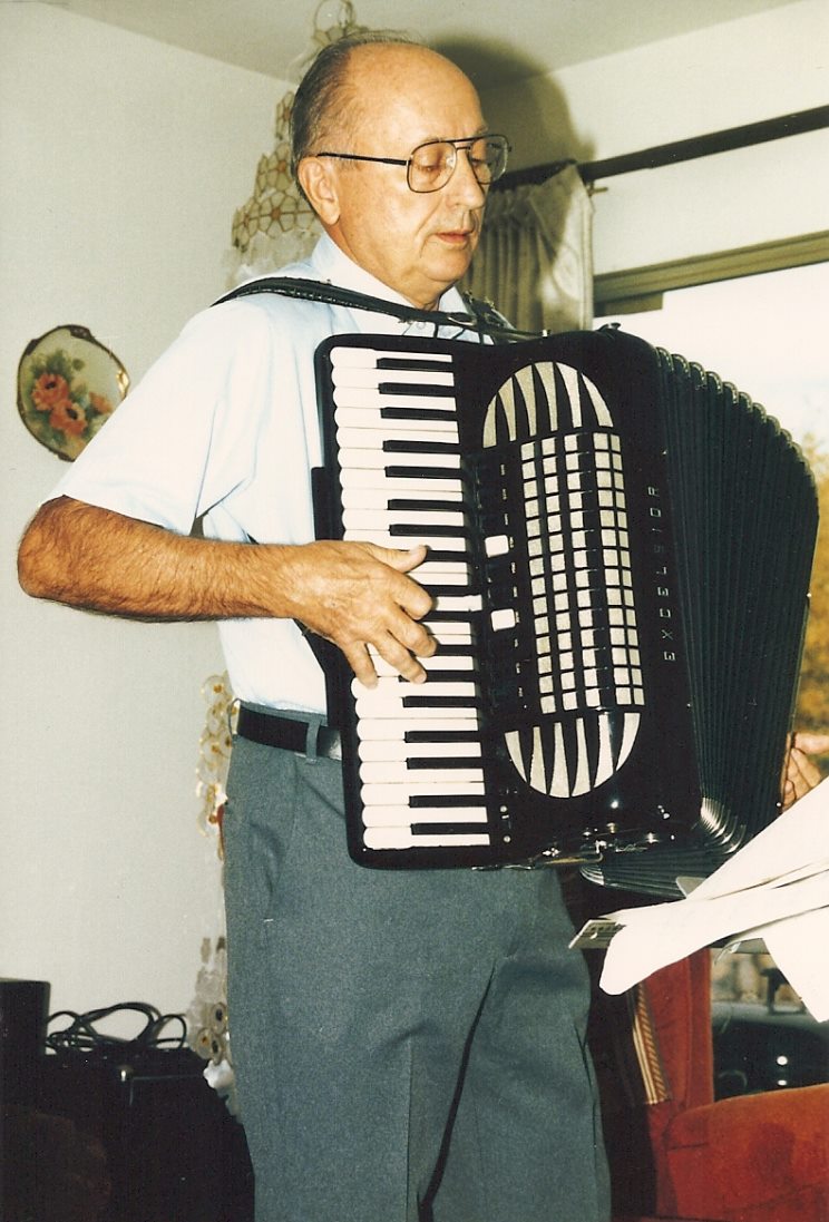1997: Melvin Dalisky playing his accordion, his life long passion. |